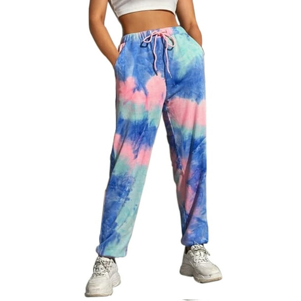 Women Casual Tie Dye Active Pants Tie Dye Drawstring Waist Sweatpants Workout Yoga Fitness Pant Trousers Jogger With Pocket Walmart Com