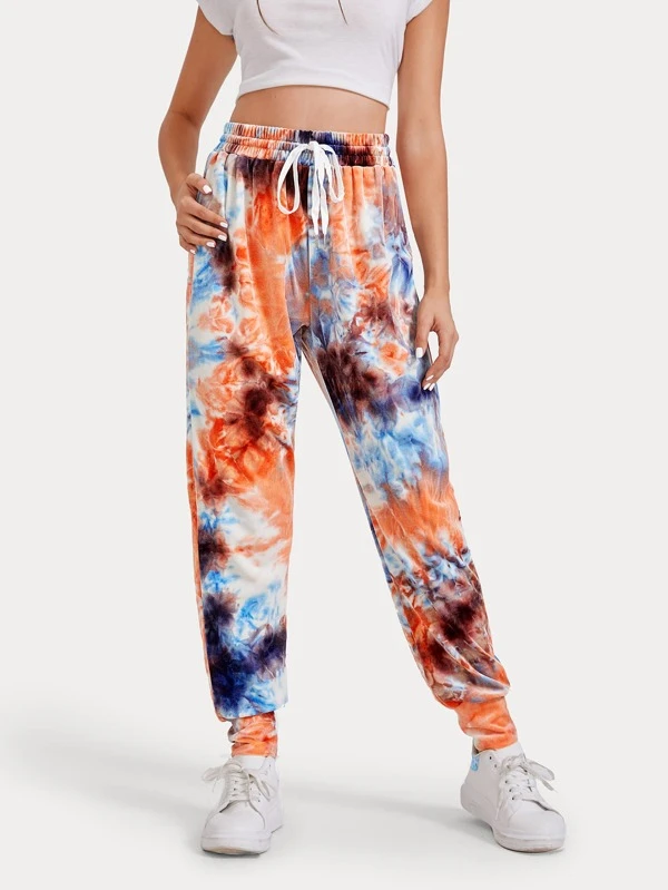 Multicolor Tie Dye Drawstring Waist Jogging Pants
